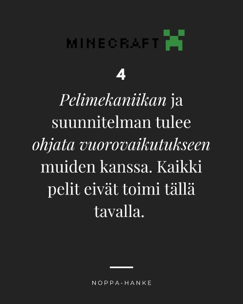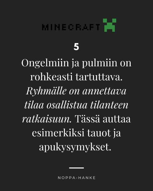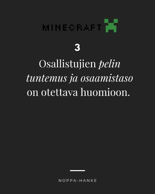 Maaliskuussa Noppa-hankkeessa on pilotoitu neljä Minecraft-pelitapahtumaa. Yhdessä pelaaminen voi parhaimmillaan tuoda ihmisiä yhteen ja auttaa löytämään uusia kavereita. Pelitapahtumista saadut kokemukset ovat opettaneet millaisia asioita onnistunut pelitapahtuma vaatii.